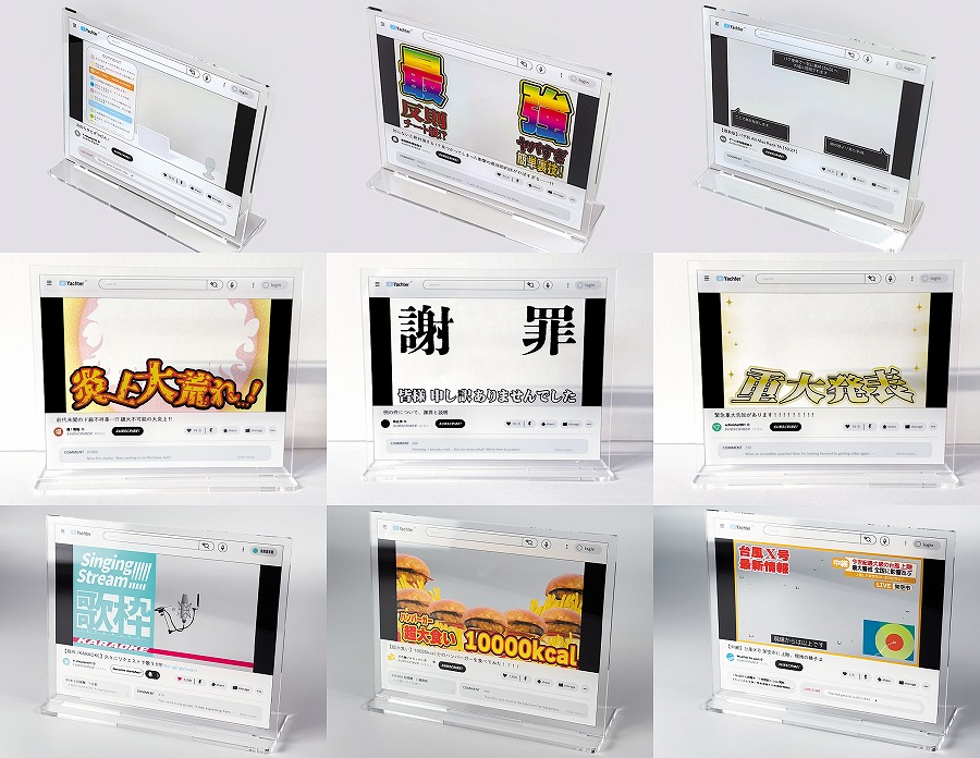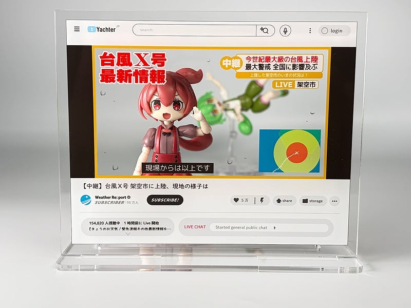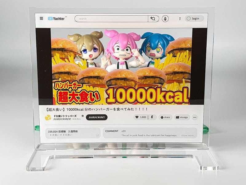 お手持ちの1/12スケールサイズ等のフィギュアやプラキット、ミニフィギュア、ぬいぐるみと一緒に飾るだけで、たちまち「あの!?動画配信中」のシチュエーションが完成するポップでユニークなアクリルスタンドです。