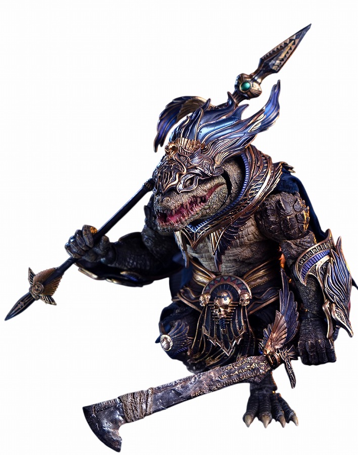 スケール:1/12サイズ:高さ約21cm素材:PVC、POM≪セット内容≫素体/人型可動式ワニボディ(全装備着脱可能)武器/長槍、シールド、ブレード、刃爪、棺(収納機能あり)装備/胸部アーマー、腰部アーマー、脚部アーマー、マント、クラウンアームガード(刃爪装着可能)