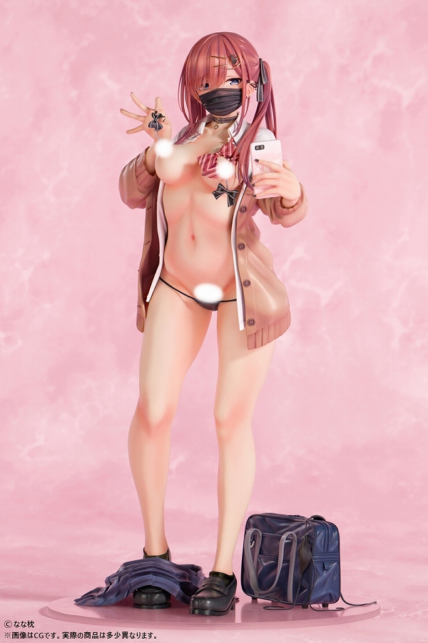 ≪二次受注≫なな枕「ピアスを見せてくれる赤髪ギャルちゃん」マスクver. 1/5スケール塗装済み完成品フィギュア